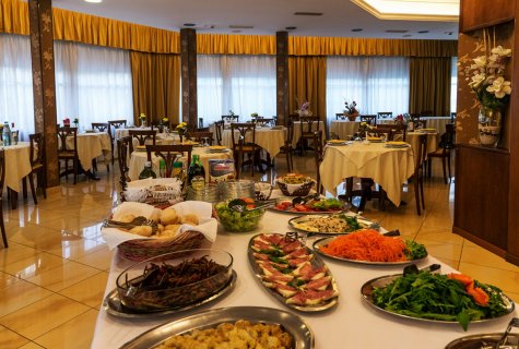 Presso il nostro ristorante un servizio a buffet vi permetterà di gustare una ricca ed abbondante colazione italiana e continentale con pietanze dolci e salate, caffè the latte, succhi di frutta, marmellata, yogurt, cereali, torte fatte in casa, brioches miele ed altre dolci sorprese.